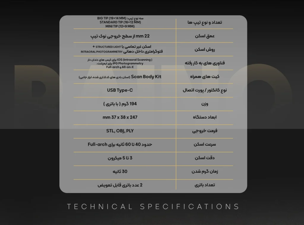 این دستگاه با بهره‌گیری از سنسورهای پیشرفته و الگوریتم‌های پردازشی هوشمند، در کمترین زمان ممکن اسکن‌هایی با دقت 10 تا 20 میکرون و با جزئیات کامل ارائه می‌دهد، که برای کاربردهای کلینیکی و لابراتواری ایده‌آل است.